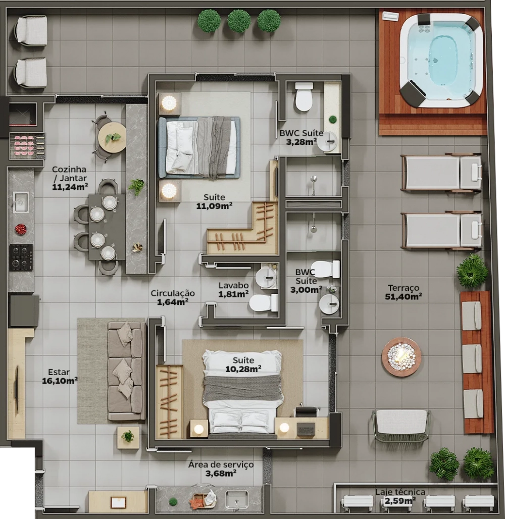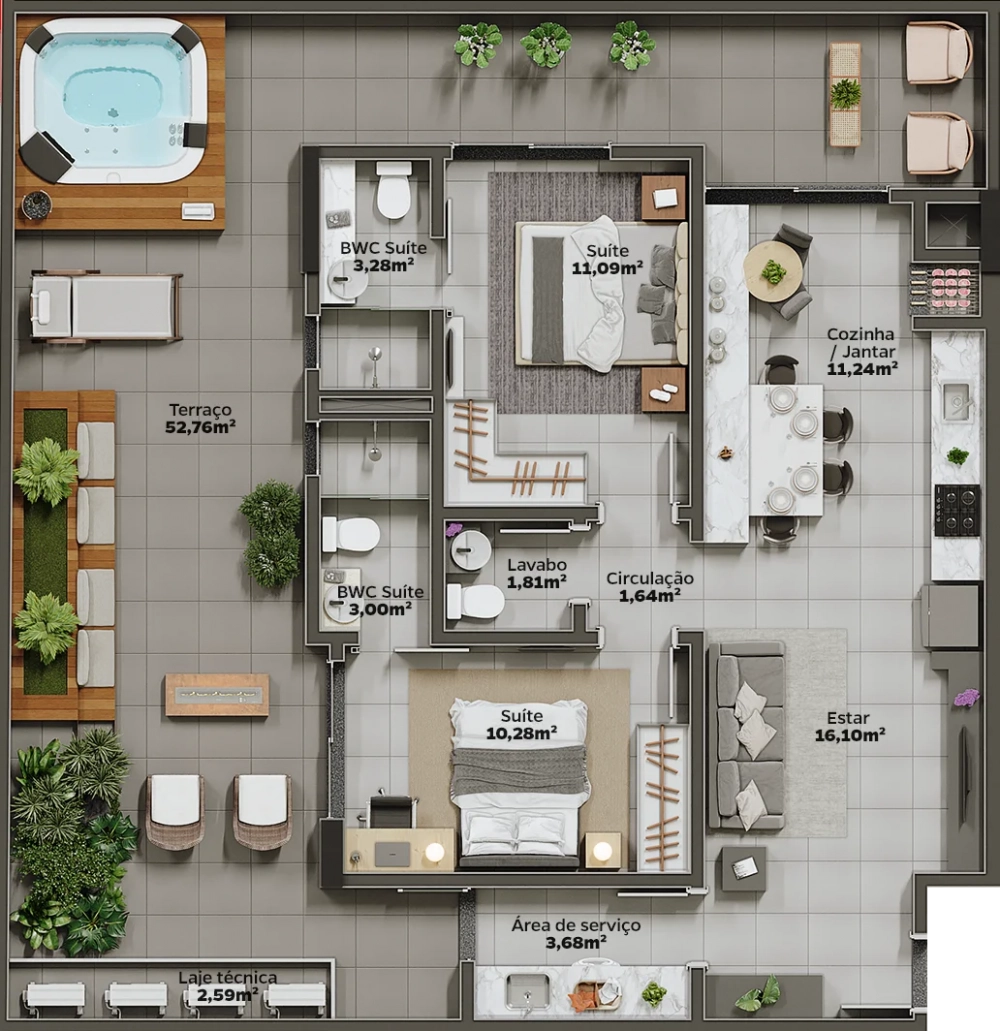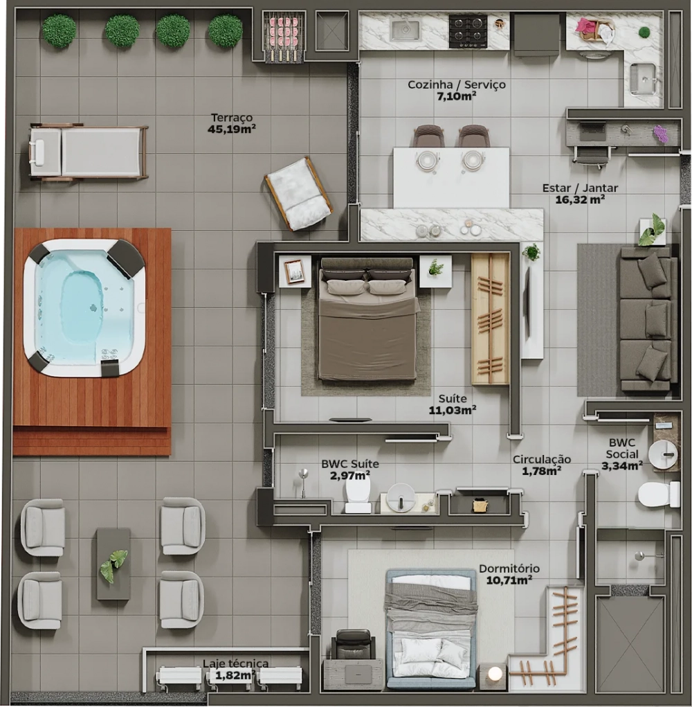 O empreendimento combina conforto, tranquilidade e modernidade em espaços feitos para as suas maiores realizações e toda a sua felicidade.